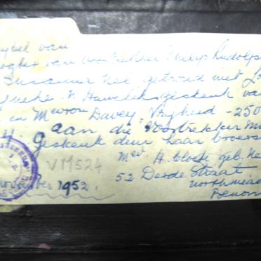 Surnames mentioned: RADEMANOwned by: Gerhard Geldenhuys Photographed and contributed by: Martha Roberts